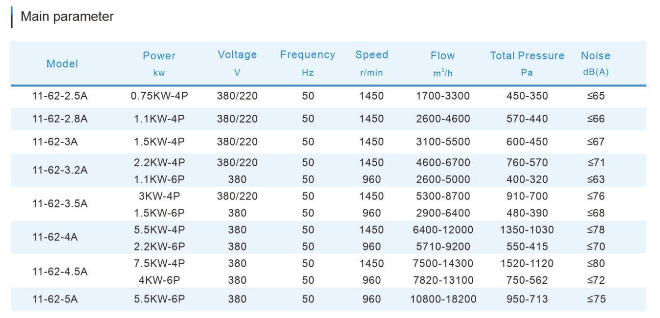 - The blowers are equipped with Y3 and YY series high-efficiency energy-saving motors with beautiful and elegant appearance.