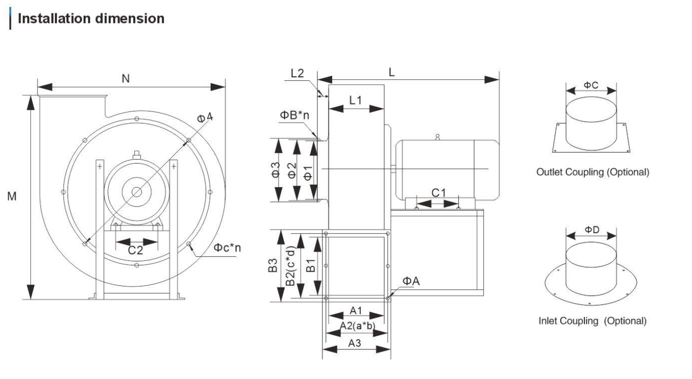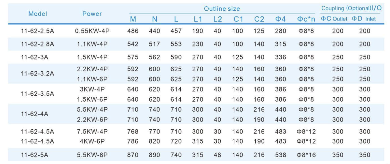 - With advanced aerodynamic impeller structure and logarithmic spiral shell, it has novel and compact structure, small vibration and easy installation.